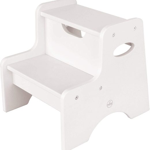 KidKraft Wooden Two-Step Childrens Stool with Handles – White, Gift for Ages 3-8