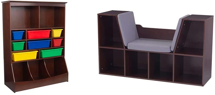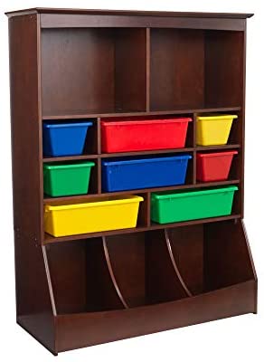 KidKraft Wooden Wall Storage Unit with 8 Plastic Bins & 13 Compartments – Espresso ,53