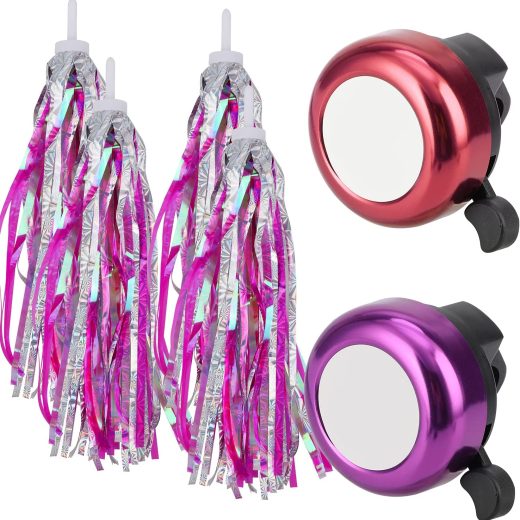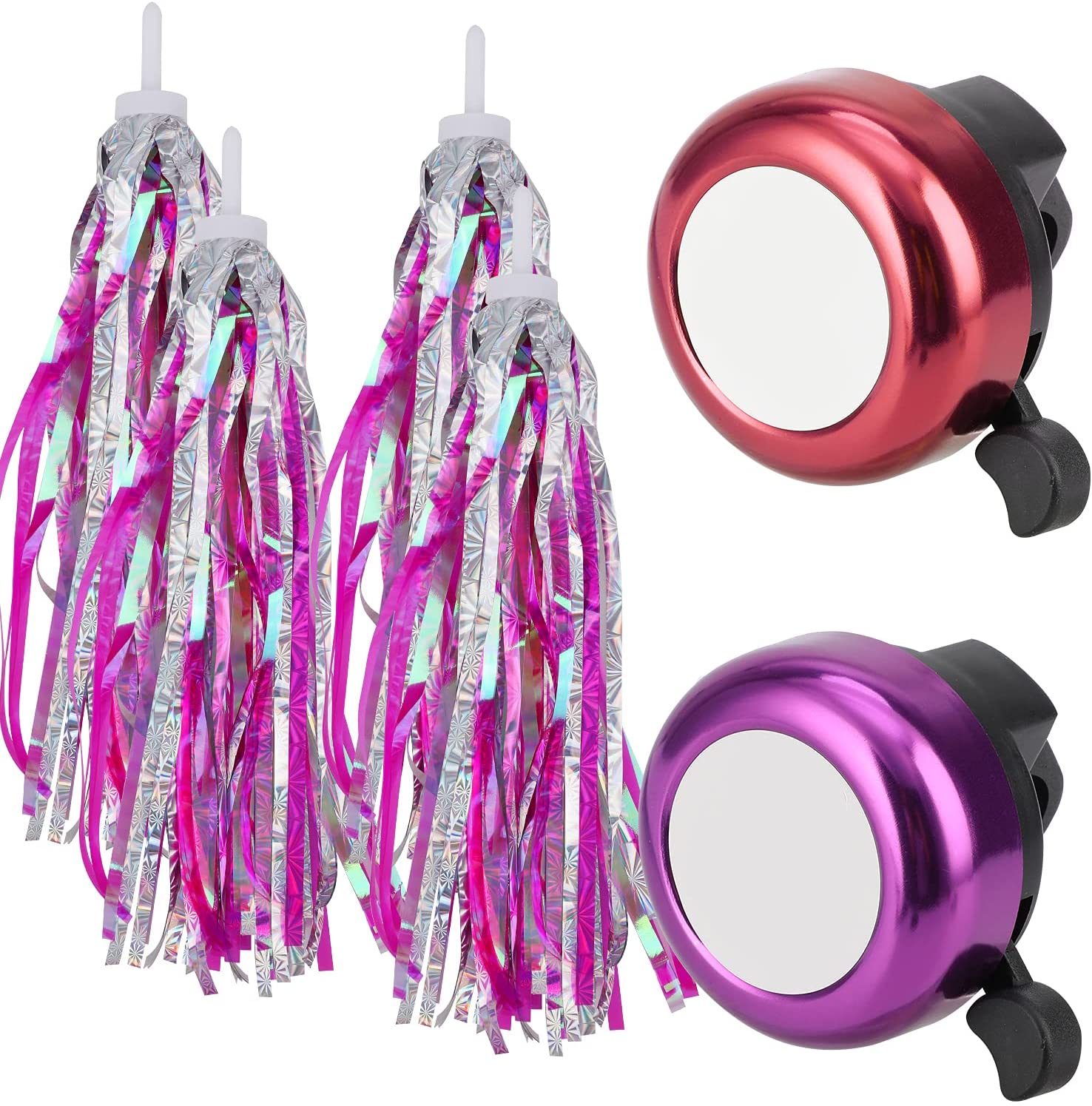 Kids Bike Accessories, 2pcs Bike Bell Horns with Cute Shaped + 4pcs Bike Handlebar Tassel Streamers for Boys and Girls, Childrenu2019s Bicycle Handlebar Lovely Decoration
