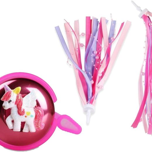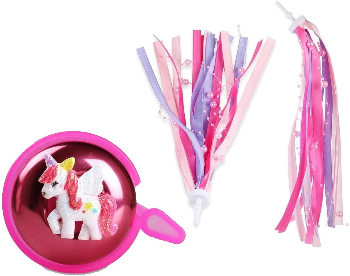 Kids Bike Bell + Streamers Cute Pink Unicorn Bike Bell + Pearl Tassel Ribbon