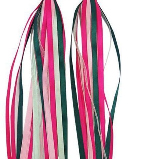 Your favorite little girl and boy will love these colorful streamers. Just fit them inside the handlebars of her bike and watch them fly through the air as she pedals along. They can even be used as mini pompoms when shes not riding. * Mounts inside handlebar grips * Fits into any handlebar * Optional handheld use * 1 pair of streamers Material:Stain/PP Length:28cm