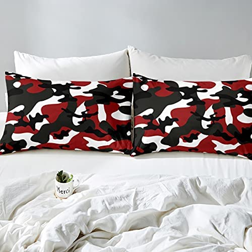 Kids Boys Camo Duvet Cover Army Camouflage Bedding Set for Girls Teens Youth Man Colorful Pattern Art Decor Comforter Cover Black Red White Bedspread Cover with 1 Pillowcase 2Pcs Bedding Twin