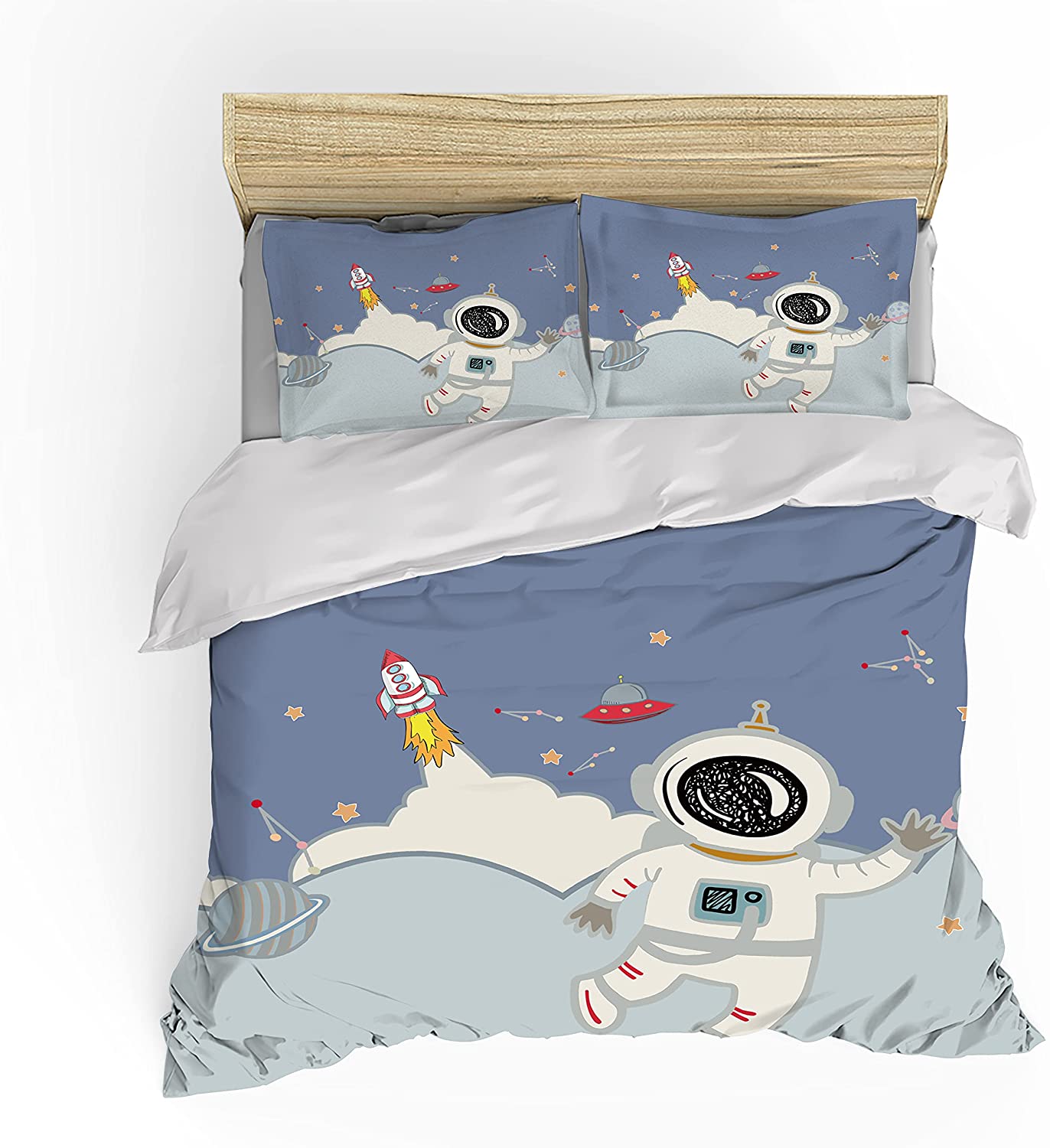 Kids Cartoon Duvet Cover Set for Boys Girls Dinosaur Little Mermaid Print Bedding Sets 1 Duvet Cover Pillowcases No Comforter (Astronaut, Twin)