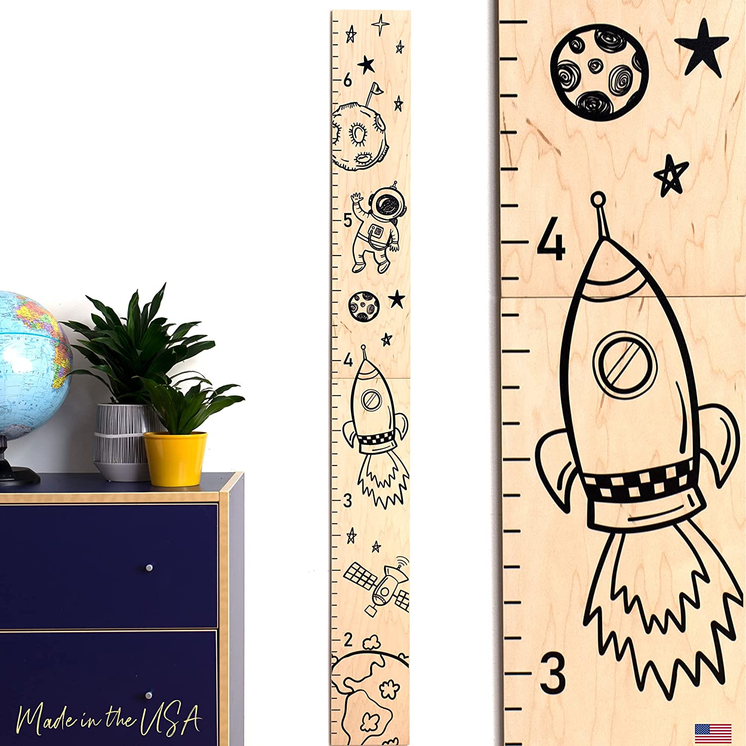 Best Gift Ideas for KidsCome on! Add color and fun to your life! Children can measure height on their own, cute forest animal cartoon patterns surround the height tree, which make early education joyful and easy. A fun way to decorate your room. Premium MaterialOur height chart wall decals are made of self-adhesive PVC material, removable and waterproof, eco-friendly and non-toxic, safe to use, durable and not easy to fade, which can keep glossy for a long time to make your home beautiful. Easy to Stick & PeelNo tools needed, self-adhesive, just stick the height measure stickers onto floor, corridor, window, door, painted wall or any smooth, flat, dry and dust free surface, which are very easy to stick and remove with no residue left behind, without damaging your walls. Decoration ScenesHeight ruler wall stickers are perfect to decorate kids bedroom, baby nursery, door, furniture, classroom, playroom, library, living room and more. In the process of playing and learning, enjoy the joyous of family happiness. Package ContentYou will get 1 x height chart wall sticker. Recommend finish sheet size: 52.3 x 15.3 inch, each wall decal consists of 2pcs (sheet size: 11.8 x 23.6 inch) small wall decals. (Please note scene picture is only an effect display, the actual size please refer to the picture of “Product Size”). You can cooperate with your child to assemble and enjoy the fun of DIY.