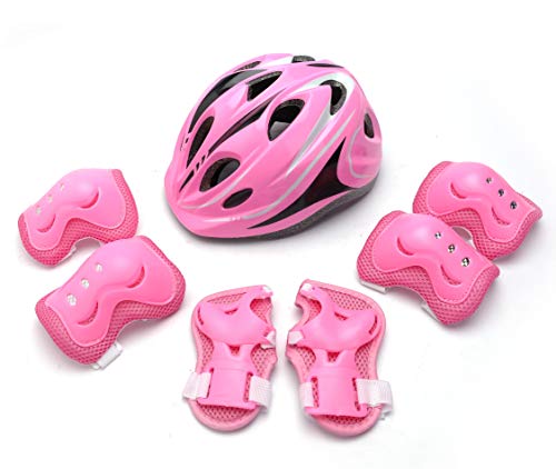 Kids Helmet Knee Elbow Pads Wrist Guard Sport Protective Gear Adjustable Bike Safety Set for Boy Girl 5-12 Years(Pink)