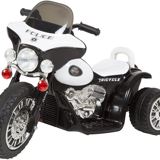 Kids Motorcycle Ride On Toy u2013 3-Wheel Battery Powered Motorbike for Kids 3 and Up u2013 Police Decals, Reverse, and Headlights by Lilu2019 Rider (White)