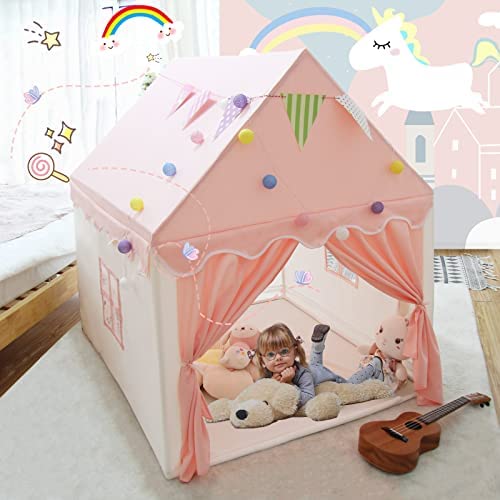 Kids Play Tents, Extra Large Playhouse for Girls, WOOD CITY Princess Castle Children Fairy Play Castle Tents Toys Gifts Indoor & Outdoor.(with Lights and Flags