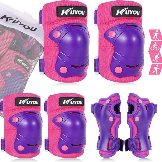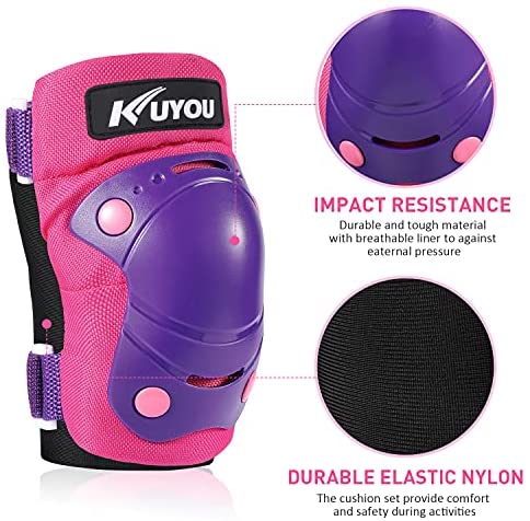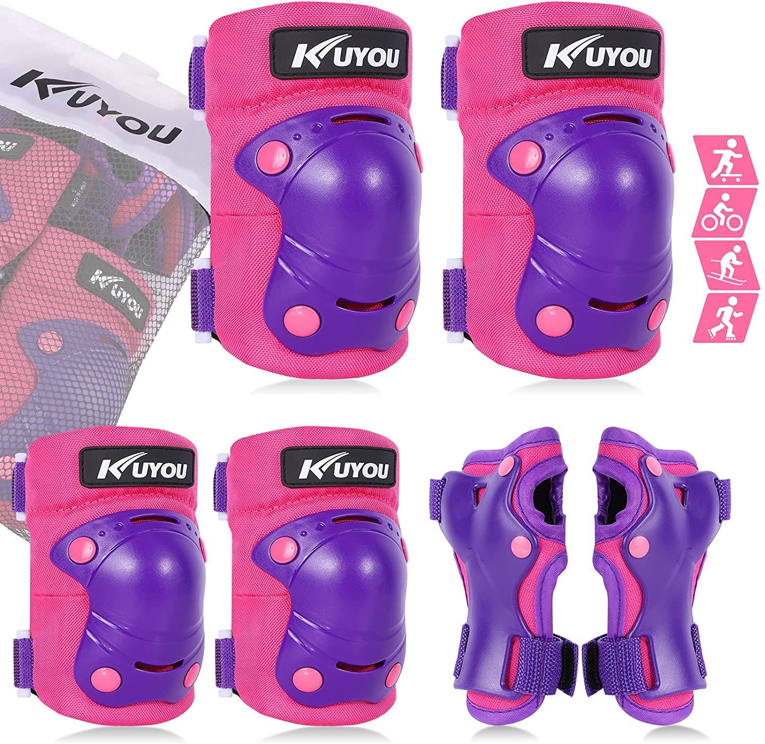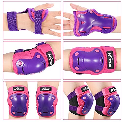 Kids Protective Gear, Kids Youth Knee Pads Elbow Pads Wrist Guards 6 in 1 Adjustable Age 4-13 Safety Gear for Roller Skating Cycling Skateboard Bike Scooter Rollerblading