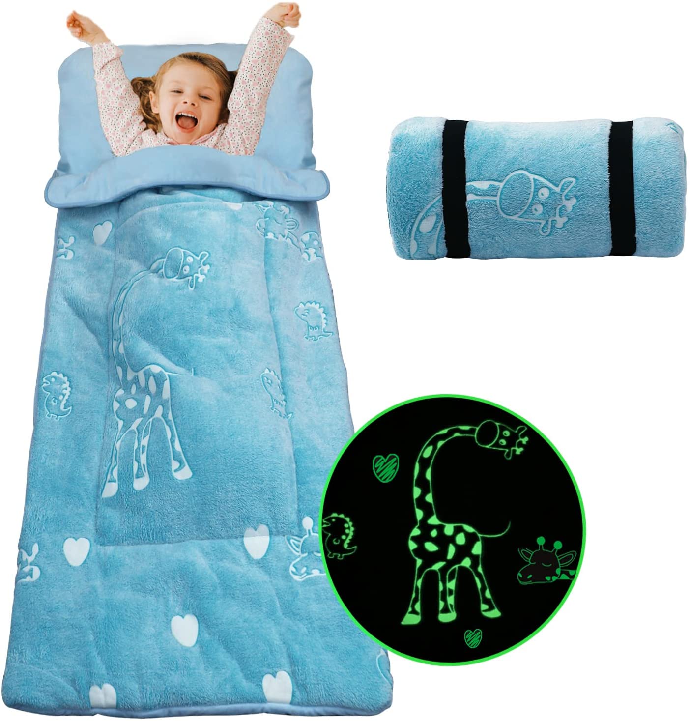 Kids Sleeping Bag, Hallo Bunny Glow in The Dark Slumber Bag & Nap Mat for Kids, 63u201d x 29