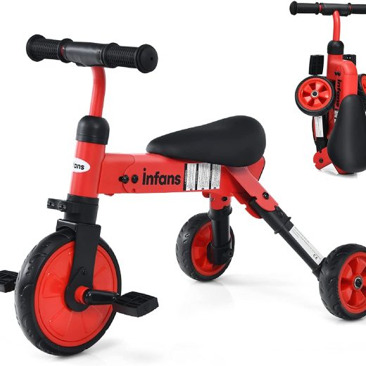 EASY TO CARRYThis foldable lightweight toddler tricycle is so easy to carry around that it takes almost no time to fold up the bike in two steps. It can be carried anywhere by a parent, stored in a small space under a bed or in the trunk of a car. Bring your tricycle and let your kids play freely in the park or backyard.