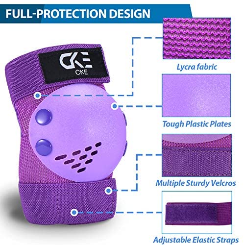 Rofessional and Comfortable Kids Pads Set Kids knee pads elbow pads wrist guards has djustable elastic straps for secure, the thickening desgin will be good protection during bike, skateboard, skating, cycling, scooter, rollerblade sport.