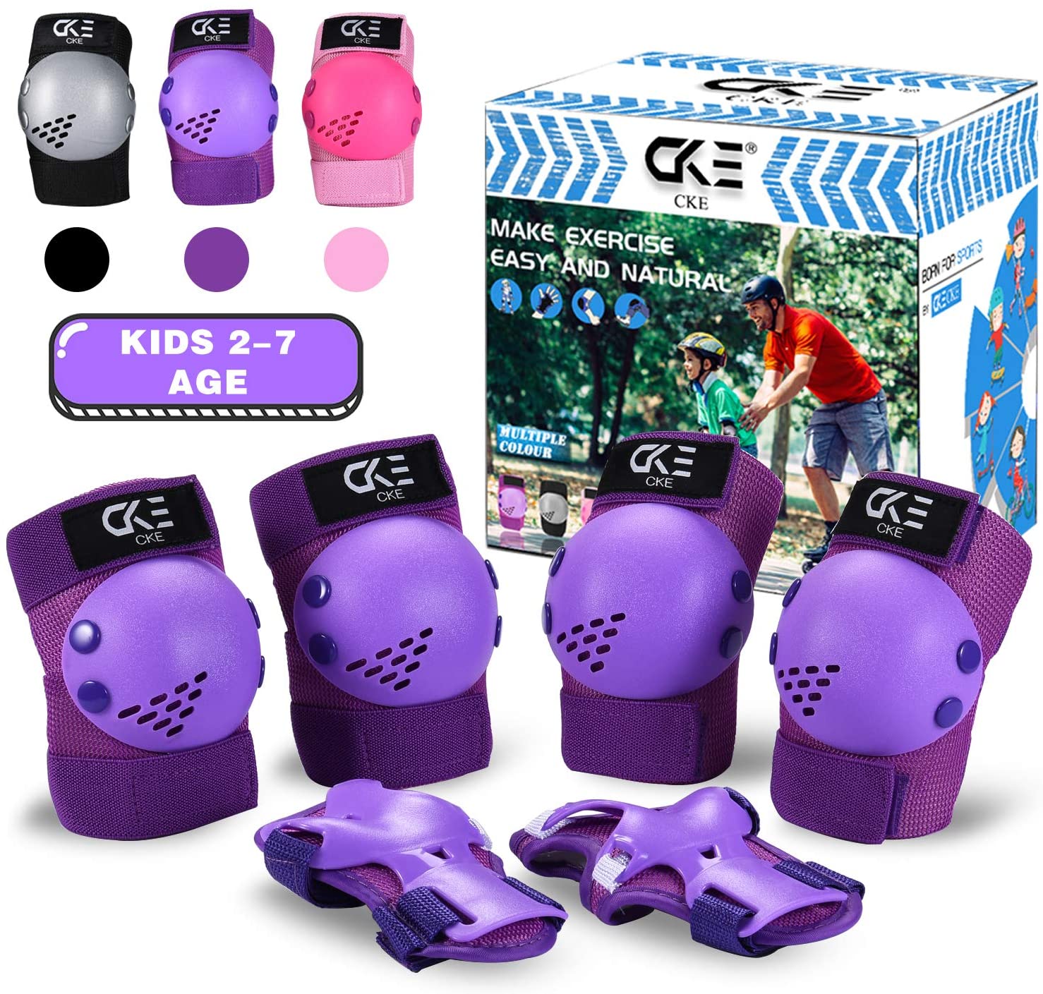 2-7 Year Old Kids Protective Gear SetThe knee elbow pads with wirst guards are designed for 2-7 year old kids sports saftey protection especially for ice and roller cycling skating, Skateboard Hoverboard, biking, cycling, skating, rolling, ATV, BMX and other extrem sports.
