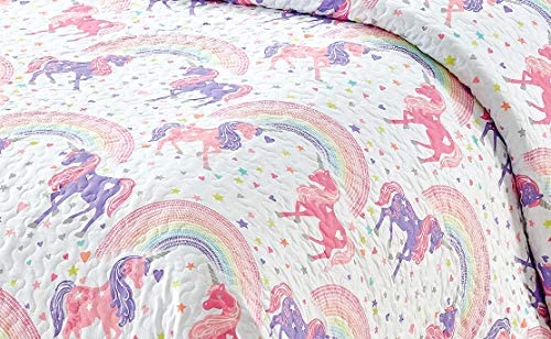 Kids Zone Collection Bedspread Coverlet Kids/Teens Unicorn Stars Hearts Rainbow White Pink Purple Yellow Orange Grey New # Unicorn Two (Twin)