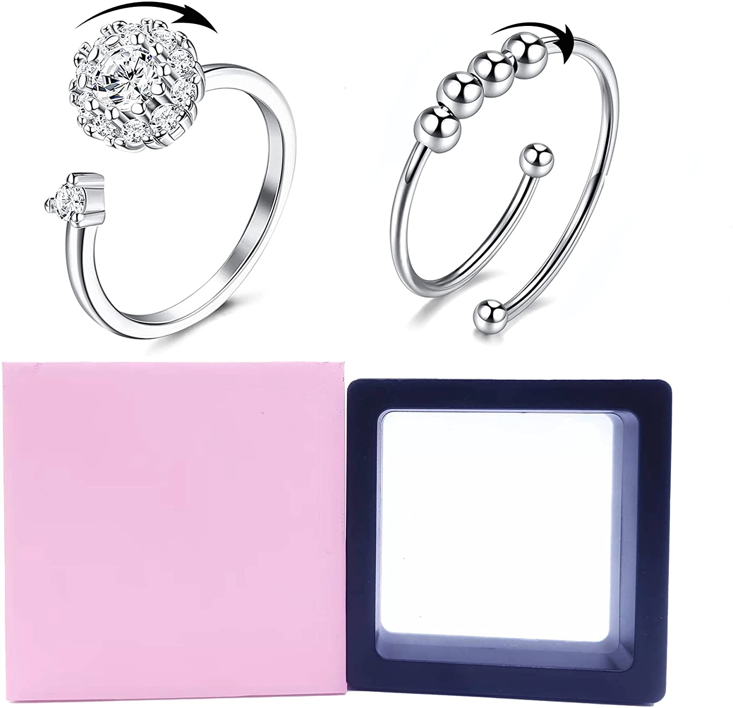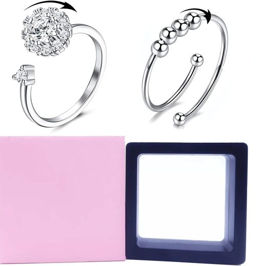 ?Unique Relieving Anxiety Ring?:The anxiety rings set have 2 fidget ring for women, 2 different designs – cubic zirconia fidget ring and spinner bead ring. A unique and good concept is suitable for attending different occasions. You can wear them as stackable rings at the same time. ?Anxiety Stress Reliever?:These anxiety rings have a rotatable design, which can divert attention and relieve boredom, anxiety and stress. The fidget rings make no noise when they rotate, and you dont have to worry about them disturbing people around you. ?High-Quality?: The fidget ring is made of high-quality copper and AAA+ cubic zircon, fine electroplating process. The spinner ring is hypoallergenic, nickel and lead-free, never turn your fingers green, smooth surface will not scratch your fingers, cubic zirconia is firm and not easy to fall off. The fidget spinner ring can spin quickly and last for a long time. The spinner bead ring scroll design is full of fun. ?Adjustable Size Design?: the fidget rings for anxiety are all adjustable, the adjustable size is about 4-11, suitable for most women. Can be used as a surprise gift for lover, Sister, Wife, Friends, Mother, Daughter for weddings, Party, Meeting, Holiday, Accidents surprises, Anniversary days, Valentines day and more. ?OUR PROMISE AND SERVICE?: If the color fades or is naturally damaged within one year, we will replace you with a new one for free. If you have any problem with our products or services, Please Feel Free to Contact Us Anytime, We Will Get to You in 12 Hours With Satisfactory and Patient Answers.