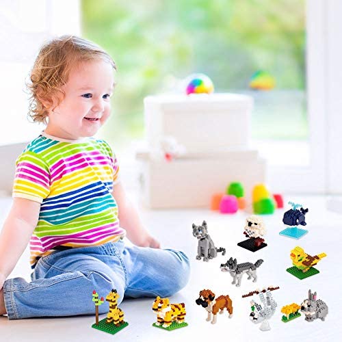 Cute Animal Design: The package includes 12 petit block animals, Russian Blue, Owl, Rabbit, Tiger, Giraffe, Sloth, Bird, Whale, Gray Wolf, Boxer, Adult Penguin, Stag Beetle. The quantity of each set block is around 150-200, and all animal is realistic and cute. Kindly remind: These are MINI blocks. Some small parts are less than 1cm; please refer to the pictures for more detailed. The bricks are very tiny, please look over the images before order. Educational & Creative: Every 12 styles of animals building blocks come in different colors, which can build color shape cognition of your kids, and will help them to ignite the imagination, improve hands-on ability, intelligence and patience. Suitable for children ages 6+, it may have certain difficulty for younger kids or need help under adults Perfect Party Favors: It can be used as birthday party favors, prizes, goodie bag fillers and pinata fillers. Safe & Premium Quality: This cute animals building blocks are made of original ABS material, non-toxic and durable that is so safe for your kids that feel free to let them play funny Individually wrapped: Each of the 12 animals set has a separate package, come are un-assembled and each come with separate instructions to tell how to assemble. We offer 12 months of quality guaranteed. If there are quality or missing parts problems, you will get a 24-hour response and enjoy total replacement or refund service at Kimiangel Store