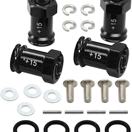 kingsea 4Pcs/Set Aluminum Alloy 12mm Hex Adapter (+15mm) Compatible with 1/16 Mini E-Revo, Mini Slash, Mini Summit Upgrade Parts Black