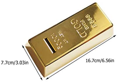 Kisangel Gold Bar Coin Bank Gold Bullion Bar Piggy Bank Brick Coin Saving Money Box Wealth Good Luck Success Decor for Kids Children Easter Birthday Party Favor