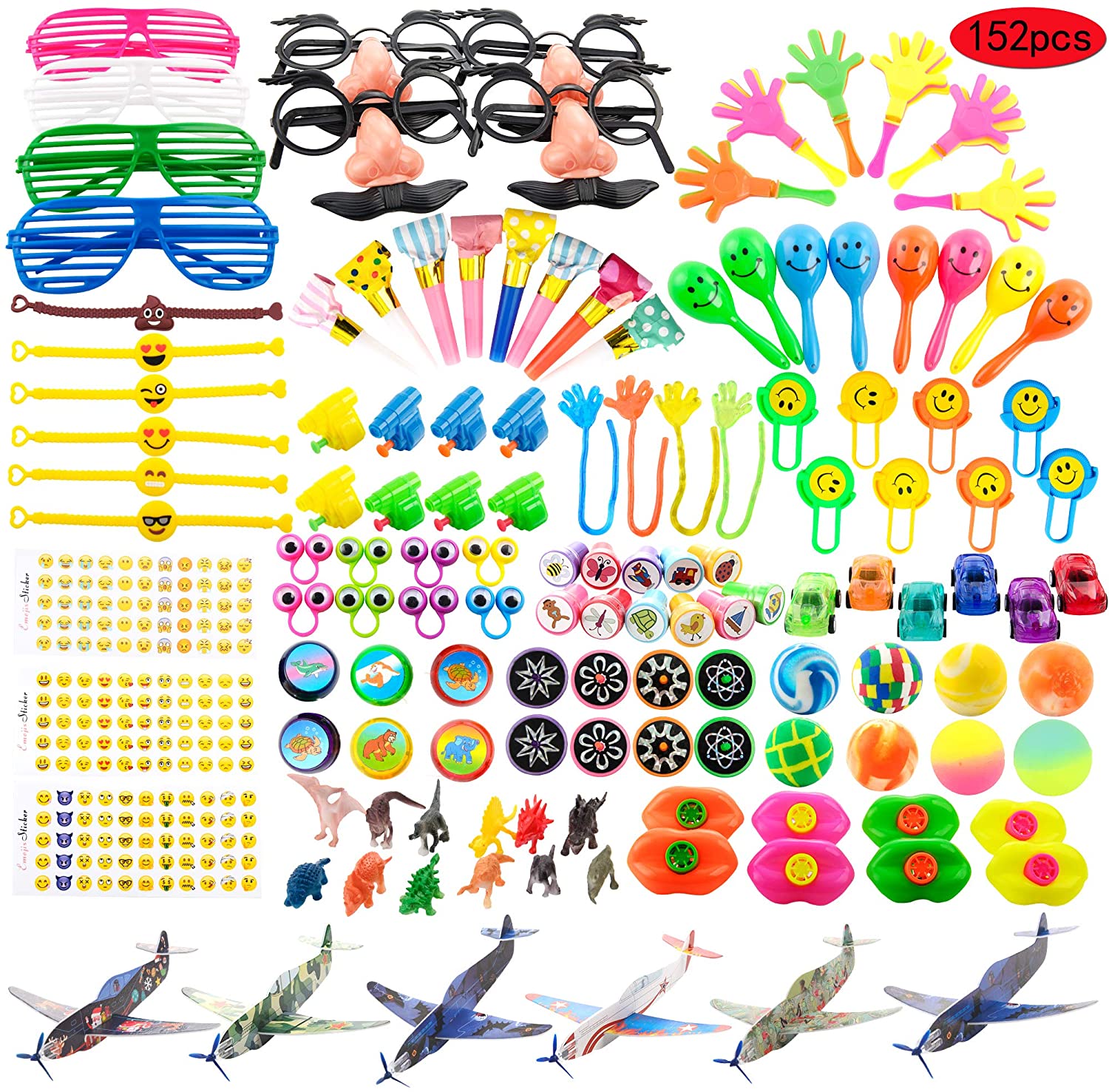 Kissdream 152 PCs party toy set contains 20 different kinds of childrens toys, including paper airplanes, Frisbee games, water guns, funny glasses and more than 152 pieces of childrens toy sets, which are loved by children. Childrens toys for various applications:Treasure box prizes for teacher,treasure chest toys for classroom,carnival prizes,pinata filler toy, Halloween prizes and toys, goody bag toys, prize box toys, party giveaways,Childrens toys for Easter and Christmas,etc. High quality materials:Made from safe materials and developed with childrens fun and safety in mind. This is a high-value, high-quality assortment. Various applications:There are 20 kinds of playing methods to use these assortment toys. Children are playing fun with sister, cousin, friends. Perfect for your birthday party, Halloween, Christmas, thanksgiving, Easter gift, and so on. Carefully designed gift box:These party favors are packed in a color box to avoid damaging during shipping, which is also a very decent present for kids