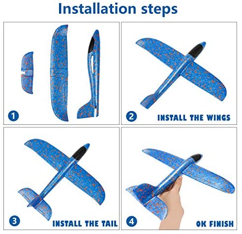 Foam Imported BUILD PRICELESS MEMORIES: Every child’s childhood has dreamed of becoming a pilot. Children can imagine flying through the blue sky through a foam plane. two groups of planes, adults can accompany the children to play,This will be a good childhood memories for children. FOR ALL AGES:Kizh throw airplane toy suitable for flying in the open area, such as the sandbeach, grasslands and other places with your children and family, Playing with children helps promote parent-child relationships. NOVEL DESIGNED: Environmental protection material,Dont need a battery,easy to install, install the wing and tail to the right place,and you can enjoy the game immediately, Reverse installation of the tail,the plane can circling in the sky BEST OUTDOOR FUN: Outdoor sport good for children health, Throw airplane toy can Let the children run, Learning how to launch and control it will help your youngsters develop coordination and critical thinking skills in a very practical setting ULTIMATE GIFT IDEA :Best gift idea for Children . Perfect Christmas Gift / Birthday Gift/Children’s day gift. If you are not satisfied with our products ,100% MONEY BACK GUARANTEE,Package include 2 x Airplane, Add to cart and hold a game with your children now:)