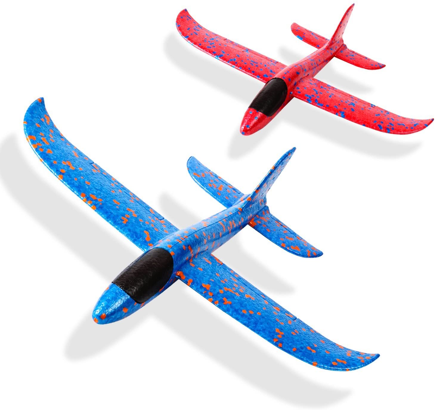 kizh Throwing Foam Airplane Toys 13.5 Inches Flying Glider Inertia Plane Manual Circling Functions Flying Aircraft Fun Best Outdoor Fun for Kids Children Boys Girls 2pcs