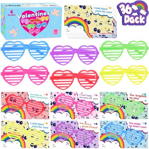 Super Value Valentine Cards Set: Our Heart-shaped Shutter Shades Set Valentine’s Day Cards include 36 pairs of glasses (6 colors,red,purple,yellow,…