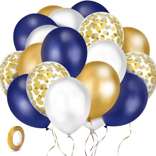 Non-toxic Safe Material : Kolavia metallic balloons are made of premium thicker latex material which is durable, long-lasting. Its Non-toxic and Eco-friendly, safe to be used and played around children. Clear balloons are Pre-Filled with gold confetti. All you have to do is inflate them and enjoy it ! Easy to Inflate : The gold confetti balloons are easy to inflate using both Helium or Air. Rub the surface of the balloons with paper napkin, dry towel, hair or silk. We recommend to use dry soft paper will be ok. A balloon pump also strongly recommended. Excellent Decoration : Party glitter balloons are suitable for all indoor and outdoor party decorations. These helium balloons are perfect for Galas, Weddings, Bridal showers, Graduation, Engagement parties, New Years Eve, Wedding, Birthday and so on. Makes your party attractive and romantic. 60PACK with Free Ribbon : You will get balloons bulk 60 pack, including 10 gold confetti balloons + 10 chrome gold balloons + 25 navy blue latex balloons + 15 pearl white balloons + Free gold ribbon. Enjoy yourself! 100% Guarantee : All our balloons latex products come with a Lifetime warranty. Kolavia will make sure that you will be satisfied with it. For any reason if you dont like. You will receive a full refund. try it, totally risk free! click add to cart now!