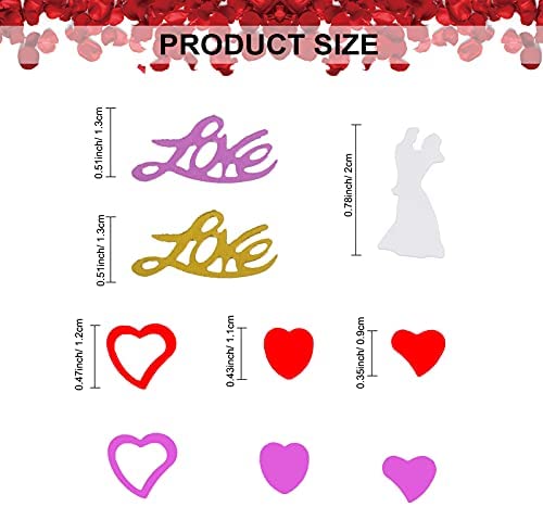 Do you want to celebrate your romance for your loverCelebrate Valentines wedding Bridal Shower this year with our heart confetti! perfect addition to your Valentines day wedding party table decoration! About Konsait: Konsait is a US registered trademark protected by US and EU Trademark Law; Combine with latest technology and design, we devote to provide exciting products using experience in peoples daily life. We are the only legal owner and seller of this trademark and take full responsibility for the quality of our products.We commit to provide best shopping experience,please contact with us if you have any concern,our customer service team always stand by to solve your problem quickly and efficiently! Features: Quantity: 80 g/ 2.8 ounces heart confetti (per pack) Size: as the picture shows Material: PVC Shape: delicate heart,Crooked heart ,hollow heart and love letter Metallic foil heart confetti bulk: Heart confetti in red silver color with metallic texture, high luster and color retention, will add romantic atmosphere to your party Wide usage: Glitter heart sequin fits for decorating your wedding party table, cards, scrapbooks, DIY craft, invitations, favor bags, gift basket, etc. More Valentines Day Decorations supplies Valentines gift for him,her, love heart balloons , Rose Petals, Valentines hanging decoration heart bunting, please visit Konsait storefront. Heart shape confetti: Metallic foil confetti in heart and hollow heart shape, each confetti size is 10 mm/ 0.4 inch, a warmly festival red color makes you enjoy the spirit of festival. Package includes: 80 Grams heart confetti for wedding bridal shower decoration