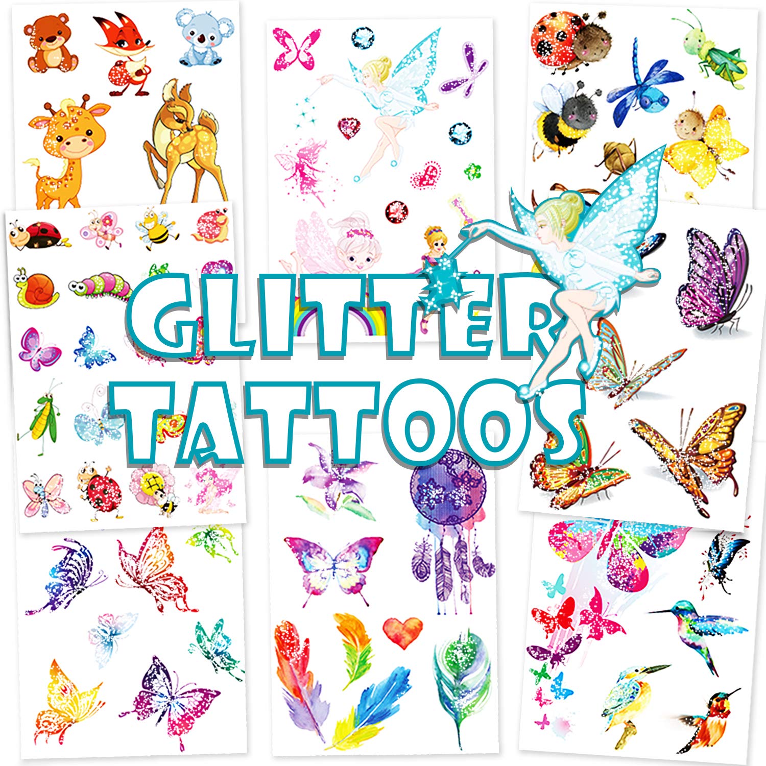 Konsait 84pcs Glitter Tattoos for Kids, Glitter Flash Scented Tattoos Animal Jungle Woodland Zoo Temporary Tattoos Art Stickers for Birthday Party Favors Supplies Kids Party Bag Goodie Filler Rewards
