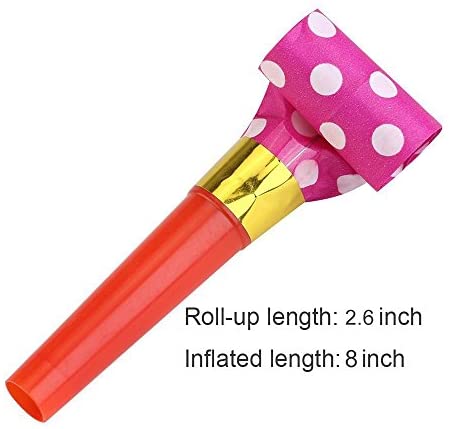 PACKAGE INCLUDED – 100 x Paper Party Blower (comes with different colors and different styles). Large amount makes sure therere always enough blowers in the party. You and your friends can blow the party all time. SIZE – Our party noise maker has a compact size which is 2.75inches long before blowing and can be stretched up to 7.9inches long when you blow it up. GOOD QUALITY – The blower is durable and reusable, wrinkle-resistant and anti-abrasion, hard to tear apart or break off. Our party blowout is non-toxic and eco-friendly, has passed CPC certification, 100% safe for children. VALUABLE SET – Our 100PCS birthday noisemakers can meet a large demand for parties. Most importantly, various colors and patterns included in the package featuring dots, triangle, tripes, hearts, etc. The birght and vivid colors on the plastic parts make the party more vibrant and colorful. WIDE APPLICATION – Our noisemakers are suitable for party celebration, cheering ups, etc. Also perfect for Easter party, Halloween party, New Year celebration, etc.