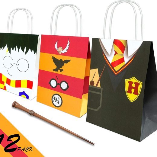 KOWLOON Magical Wizard School Party Favors Bags Treat Gift Paper Bags for Birthday Cosplay Theme Party Supplies Decorations 12 Pack