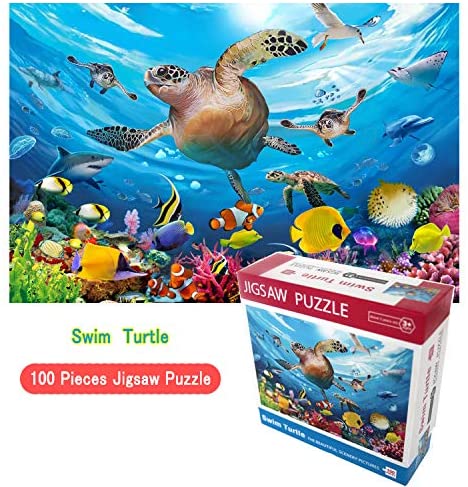Koyiwa 100 Pieces Jigsaw Puzzle for Kids Age 4-8 Sea Turtle Swimming Fantastic Seaworld Educational Puzzle Toys for Toddler Children Boys and Girls (15 x 10 inch)