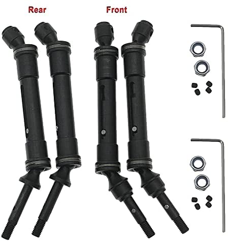 Product description 100Percent New and High Quality Material: Metal Color: As pictures. Length Range: Approx.115~140mm. Qty: 2pcsack Suitable for 1:10 Traxxas Slash 4X4, Slash, Rustler VXL, Stampede 4X4 VXL Easy to install and practical ,durable. Perfect replacement for old or damaged. Package includes: 2pcs Drive Shafts 4pcs Bolts 2pcs Nuts 1pcs Hex Wrench. Note: Please allow 13mm differs due to manual measurement. Due to the different display and different light, the picture may not reflect the actual color of the item.