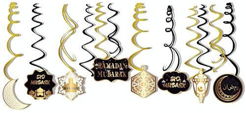 Kristin Paradise 30Ct Eid Mubarak Hanging Swirl Decorations, Ramadan Kareem Theme Decor for Home, Paper Party Supplies for Kids Adult