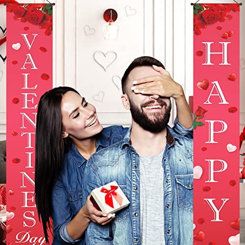 KYGNE Red Happy Valentines Day Door Banner, Valentines Day Banners for Porch Sign Couplets Romantic Entrance Couplet Valentines Day Home Decor for Romantic Decorations Special Night