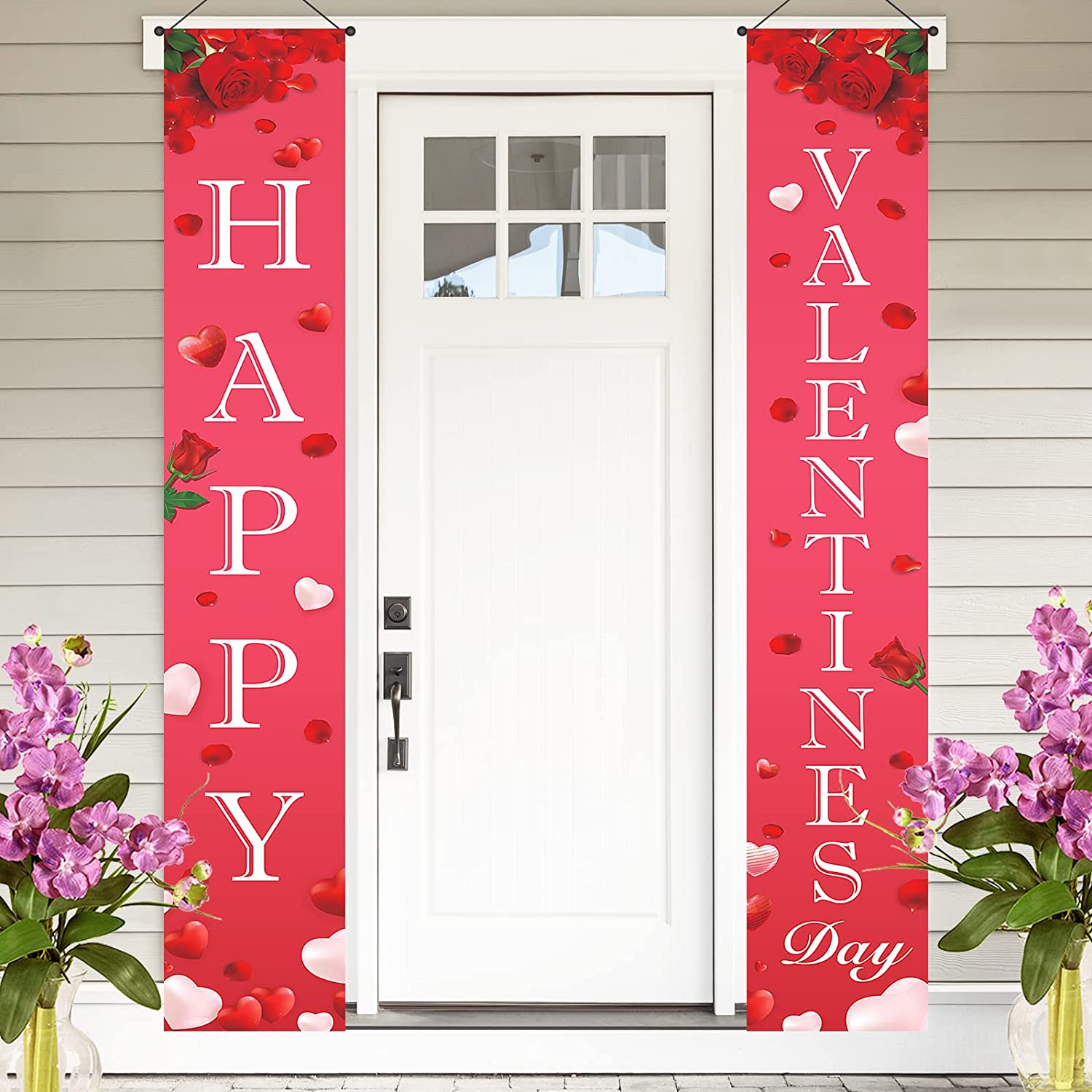 ?Quantity & Size?: 1 set includes 2 pieces of porch signs with colorful words and patterns. The size of each porch sign is 12.6 inch x 70.8 inch, and you can adjust the length of the rope as needed. ?Durable Material?: The door banner is made of durable polyester fabric(light-weighted&reusable). Using high-quality professional ink, more colorful and shining bright, will not fade easily. Features in folded/easy to carry/washable/tear-resistant. ?Easy to Use & Hang?: Each banner will come with rope that can help you hang these pretty banners very easily with a good way. The corners of bottom from each banner will have brass grommet so that you can hold it stably by different weathers. And these banners do not need to assemble, easy to use. ?Delicate Design?: Happy Valentines Day party banners includes the element of Valentines, all these could create the atmosphere for your Valentine’s party that you need, how sweet, forever. ?Create the Atmosphere of Valentines Day?: Valentines Day couplets are the ideal decoration for your doormark. Bright red Valentines Day banners and warm greetings add a warm and happy holiday atmosphere to your home. Decorate your house with our porch logo and make your house full of lovers mood.