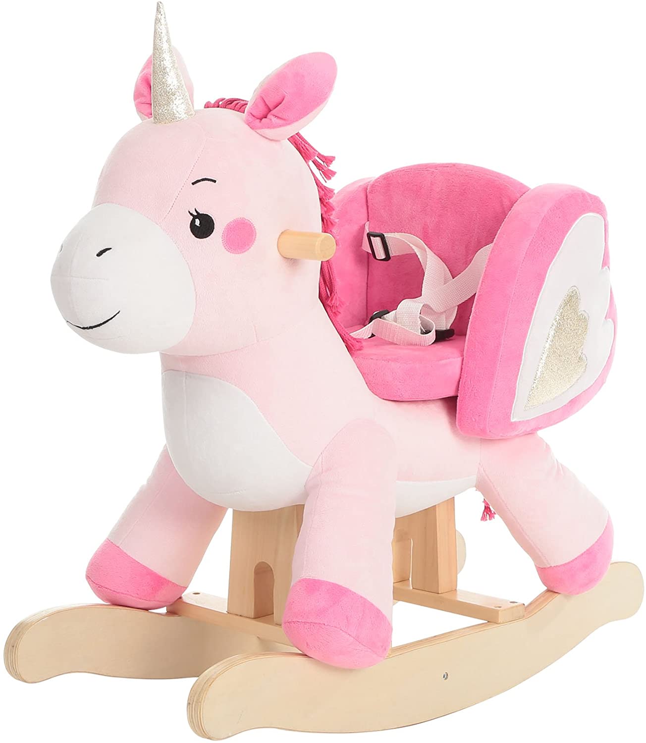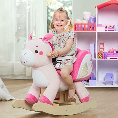 3-Side Seat with Belt – Seat designed for small kids who have less balance capability than older kids, a 3-sides high rack seat guarantees that kids will be always protected while rocking, also the racks are well stuffed with pp. cotton, leaning against it wont hurt a hair, just pure comfort! Also it is a suitable rocking horse chair or toddler rocking horse, a must-have rocking horse 1 year old girl. So the girls ride on, riding unicorn is suitable to you baby dut to its plush rocker.