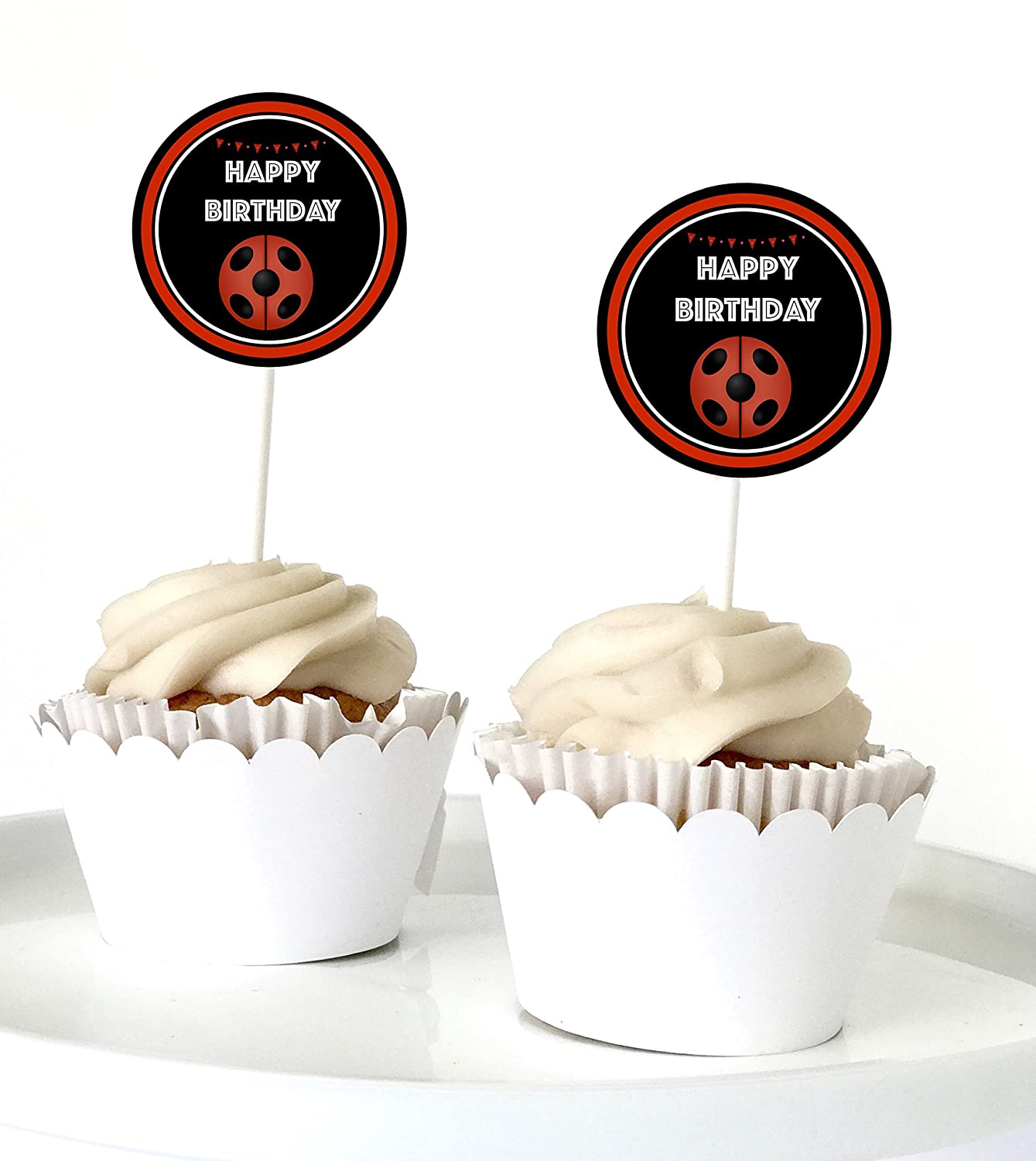 Ladybug Cupcake Toppers 12 pcs – Cake Picks Party Decorations Supplies , Baby Shower Themed