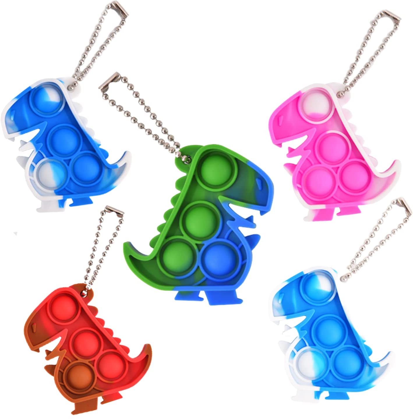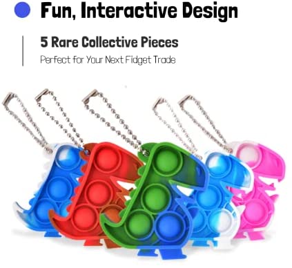 LAHFT 5pcs Mini Fidget Keychain, Variety Pack of Pop it, Anxiety Stress Reliever Hand Toys, Squeeze Sensory Toysu2026 (Dino)
