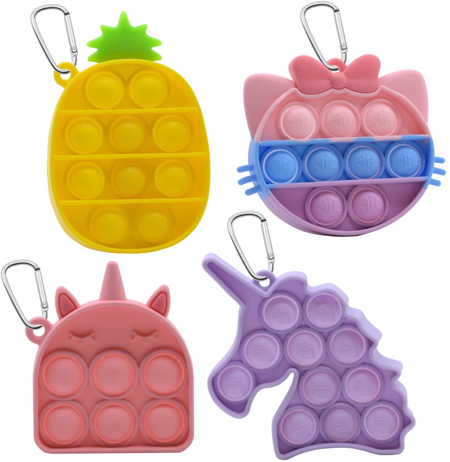 Lakke 4 PCS – Mini Pop It Fidget Sensory Toy for Anti-Anxiety Stress Relief Key Chain for Adults and Kids. Office, School, On The Go. Mini Pop Bubble Toy for Autistic ADHD Kids