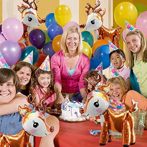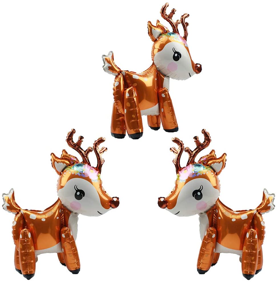 Large 3D Deer Airwalker Walking Animal Balloons For Kids Boys Girls Party Supplies Baby Showers Birthday Decorations, 3 Pack Cute Mylar Foil Self Standing Reindeer Balloons