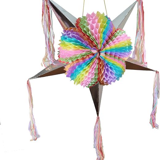 Colorful Big 5-Point Star Pinata measures 32” from tip to tip when is open. The folded pinata design makes it really easy to transport or store. Be…