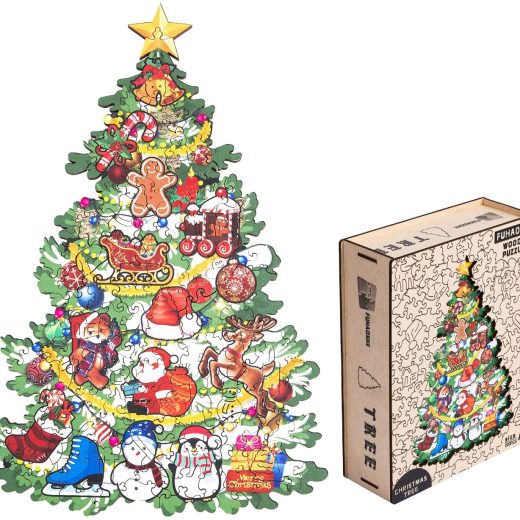 Large Christmas Tree Wooden Puzzle Unique Christmas Home Decorations Irregular Wood Cut Jigsaw Puzzle Toys Santa for Kids 12 x16inches, 200pieces