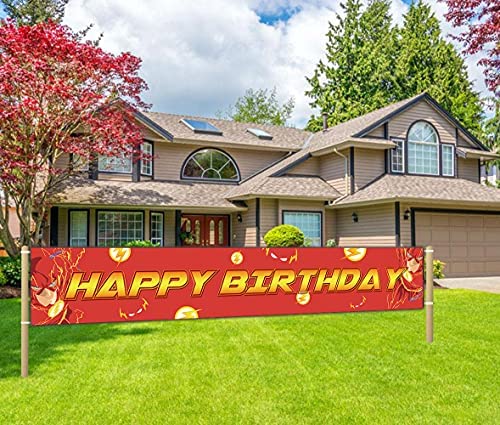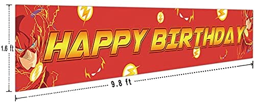 Large Flash Inspired Happy Birthday Yard Banner | Flash Inspired Happy Birthday Decoration Party Supplies | Flash Superhero Birthday Party Decoration – 9.8 x 1.6FT