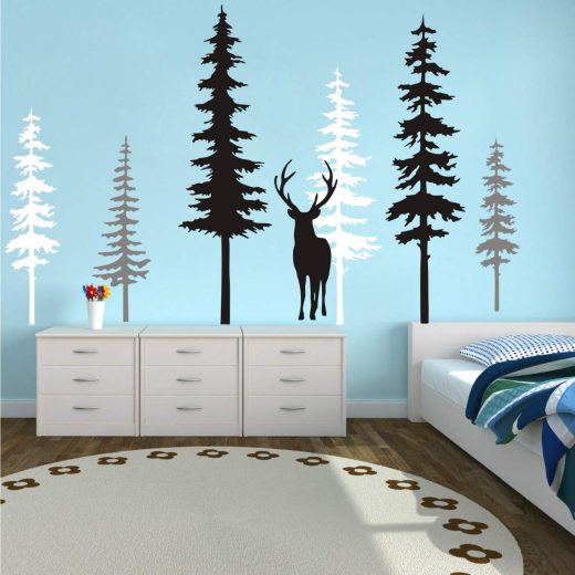 Theme Forest,Art Surface Recommendation Wall YOYOYU ART HOME DECOR Color White+gray+black W/Deer Room Type Kitchen, Bedroom, Living Room, Nursery Material Vinyl, Pine Installation Type Wall Unit Count 1 Count