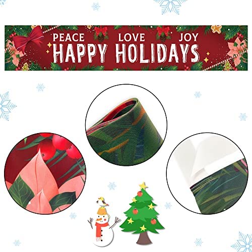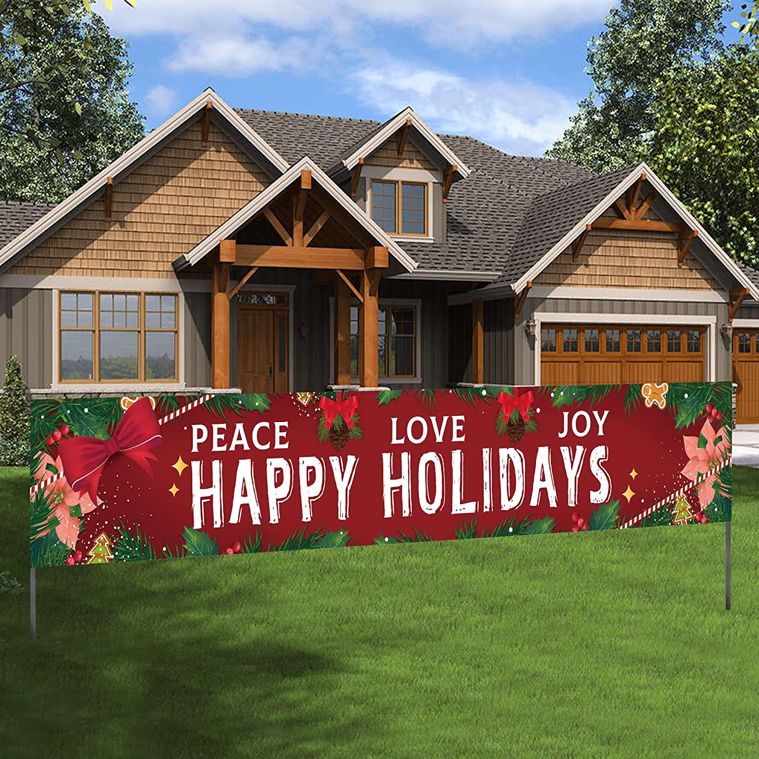 Large Happy Holidays Banner, Peace Love Joy Happy Holidays Yard Sign, Xmas Winter Holiday Hanging Decor Indoor Outdoor
