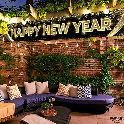 Large Happy New Year Yard Sign – 120×20 Inch Happy New Year Banner 2022 | Black and Gold Happy New Year Decorations 2022 | New Years Eve Party Supplies 2022, Happy New Year Yard Banner NYE Decorations 2022