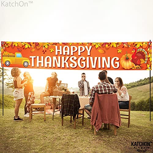 XTRA LARGE – 120 X 20 INCH | HAPPY FALL YOU ALL WITH THIS THANKSGIVING YARD BANNER : Looking for outdoor thanksgiving decorations Well this adorable happy thanksgiving banner is Xtra Large size of 120×20 Inch that is very noticeable. The maple leaves, turkey, hat, pumpkins and other cute patterns printed on orange background fully cater to the Thanksgiving theme and spirit REUSABLE | STURDY | MADE FROM PREMIUM QUALITY MATERIAL : This thanksgiving fall banner outdoor, is made from lightweight, sturdy and Smooth and thick Cloth Fabric Material that is tear-resistant and suitable for both indoor and outdoor use .The best part is that this beautiful thanksgiving decorations outdoor is durable enough so that you can use it next fall season. EASY TO ASSEMBLE | THANKSGIVING PARTY DECORATIONS : This thanksgiving banner decorations has metal ring on the each corner you can strap it with the ribbon that is already included in the package, you just need spend a few minutes to find an ideal place and hang it up. This thanksgiving yard sign will be a great ornament in your Thanksgiving Day party, providing a great visual effect and let holiday spirit spread among your family. BUY WITH CONFIDENCE | 100% GUARANTEED SATISFACTION : Upon placing your order, for happy thanksgiving banner indoor you are covered with 100% money back guarantee if you were not satisfied with the quality of these thanksgiving yard decorations we provide you with full refund on these happy thanksgiving sign. A Party backdrop decoration banner can be hung as thanksgiving door decorations. UNIQUE DESIGN | FINE FINISH | HARVEST PARTY DECORATIONS : This outside thanksgiving decorations for home can be used as party supplies for baby shower, bridal shower, wedding, birthday, holiday, baptism, graduation, retirement or as wallpaper, curtain, tapestry, tablecloth, home decor. It saves time and saves energy by decorating, on the wall, between trees, indoor or outdoor wall, bedroom, playground, anywhere you want to hang.
