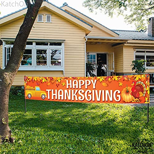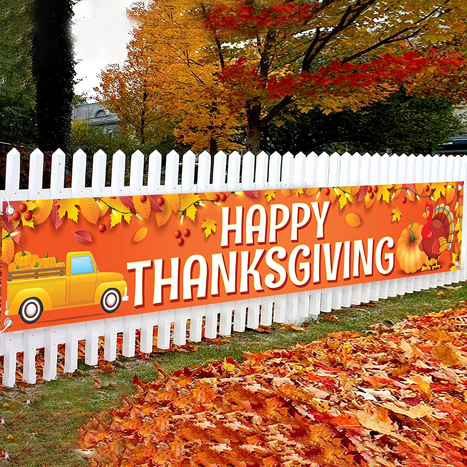 Large Happy Thanksgiving Banner – Thanksgiving Yard Sign, 120×20 Inch | Maple Leaf Turkey Fall Banner | Thanksgiving Outdoor Banner, Thanksgiving Yard Decorations | Thanksgiving Party Decorations