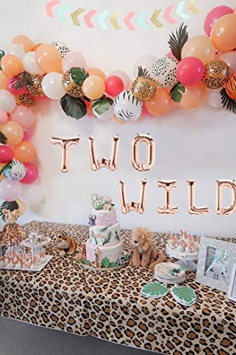 LaVenty 14 PCS Rose Gold Two Wild Balloons Two Wild Birthday Party Decoration Jungle 2nd Birthday Decoration for Safari Two Wild birthday Jungle Second Birthday