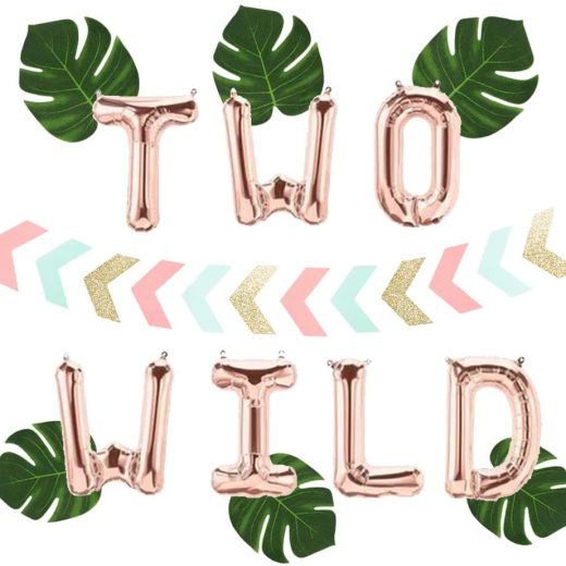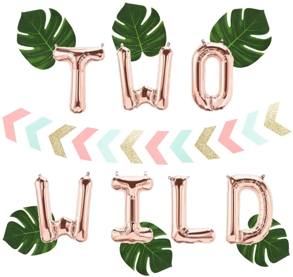 Perfect for Safari Born Two be Wild birthday, Jungle Zoo Second Birthday! Celebrate the arrival of a special little girl for a fun jungle second birthday! Every kid likes zoo animal party. Use them as party favors and your kids will love. Perfect for safari jungle themed party, Jungle birthday, Jungle baby shower. Package Included: 1 x “ Two Wild “ Letters Balloons, 1x pink, blue,white arrow garland. 12 x palm leaves. Notice: The letter balloons are not made to float with helium! -It can easily hooked through through the holes on the tabs